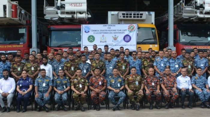 The exercise was organized on September 1 and 2 at Fire Service and Civil Defense (FSCD), Purbachal, Narayanganj under the management of Bangladesh National Authority for Chemical Weapons Convention (BNACWC) and with the assistance of FSCD.